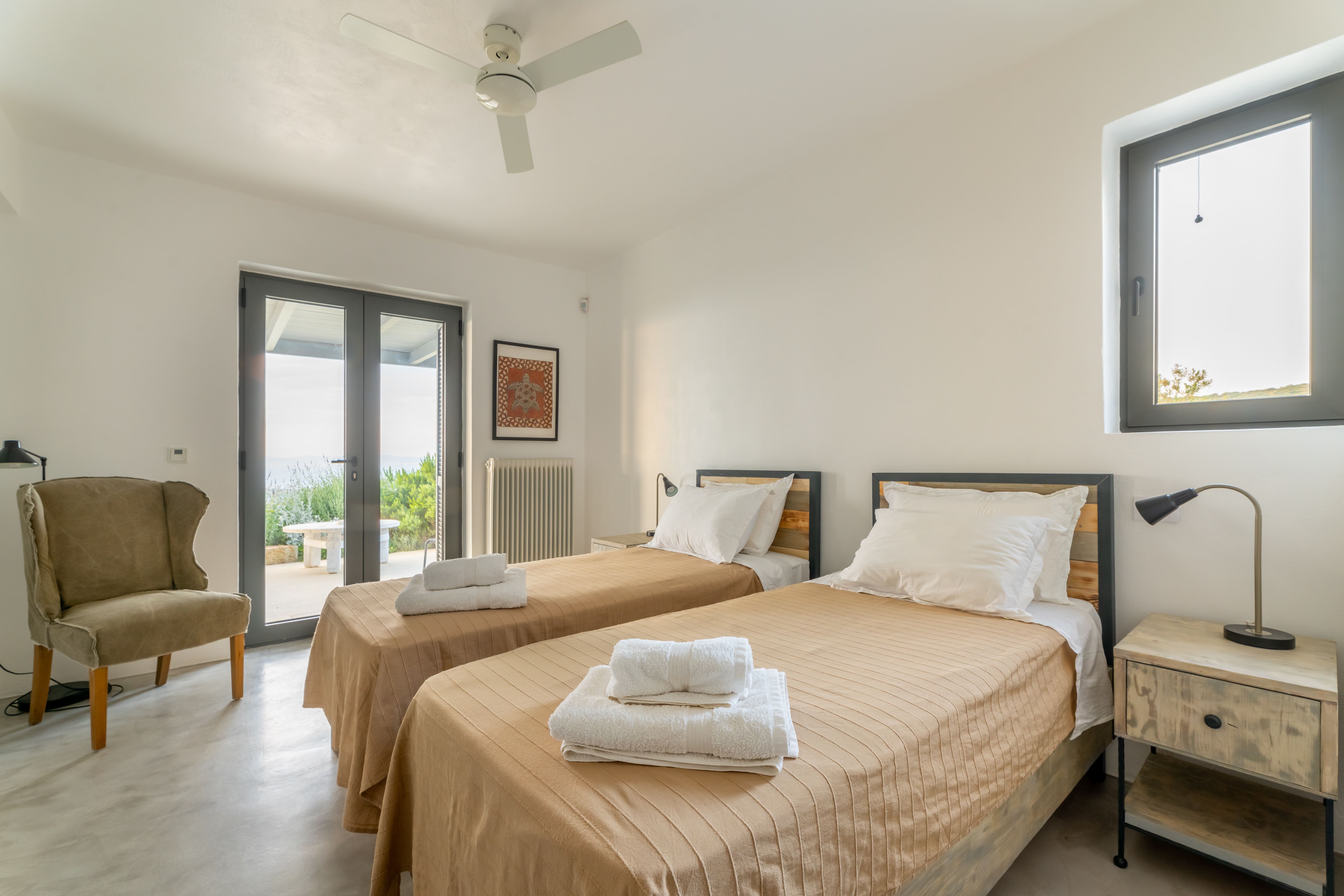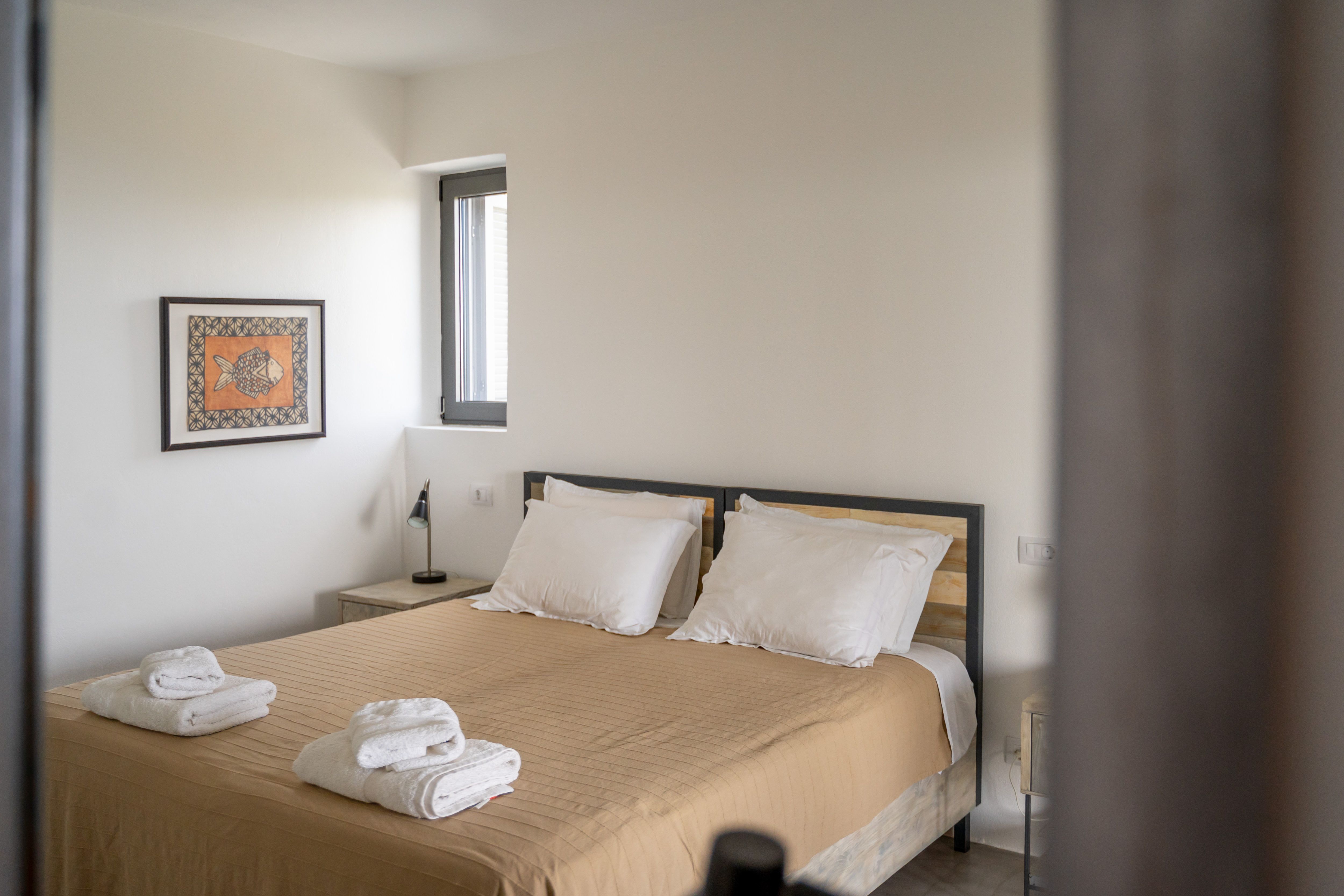 - Διπλό κρεβάτι ή δύο μονά (κατόπιν συνεννόησης) με ορθοπεδικό στρώμα Linea